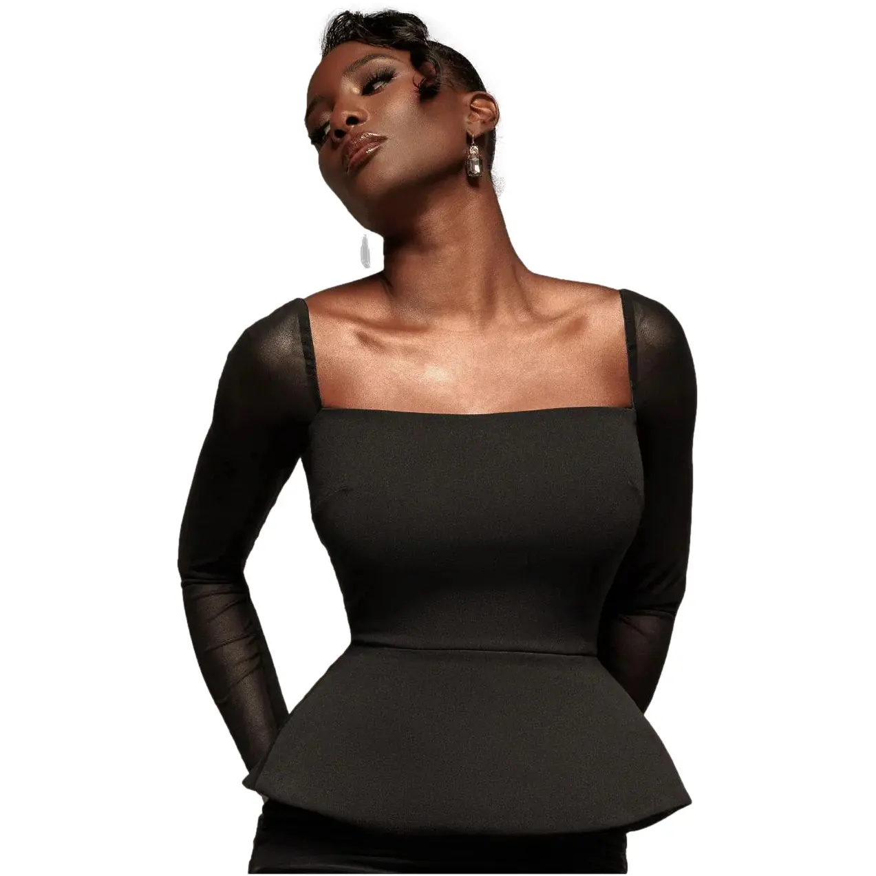 Durex vrouw lange mouw crêpe scuba instapjurk met peplum uni stof Goddiva