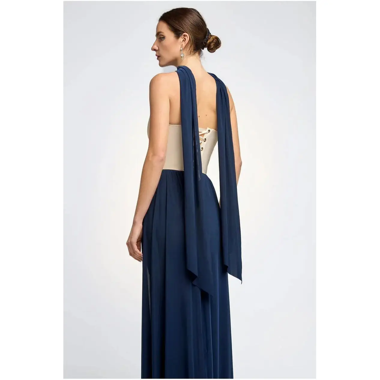 Damesjurk met plooi Goddiva Lurex Halterneck Maxi