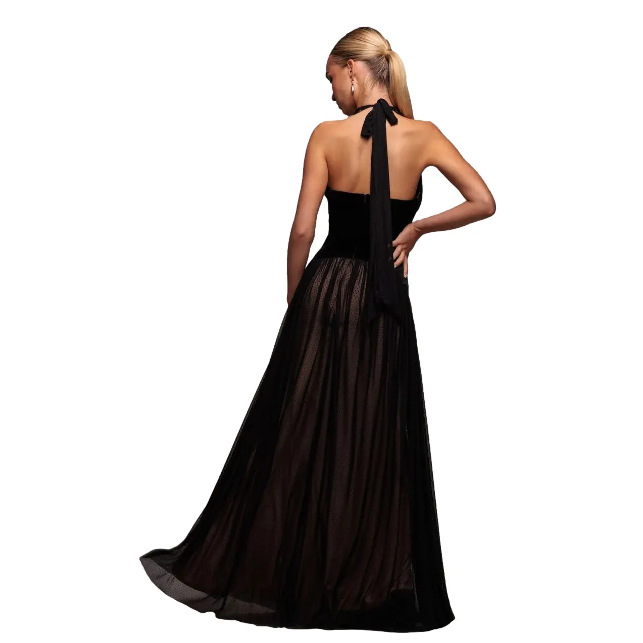 Lange jurk met blote rug trapeze vrouw Goddiva