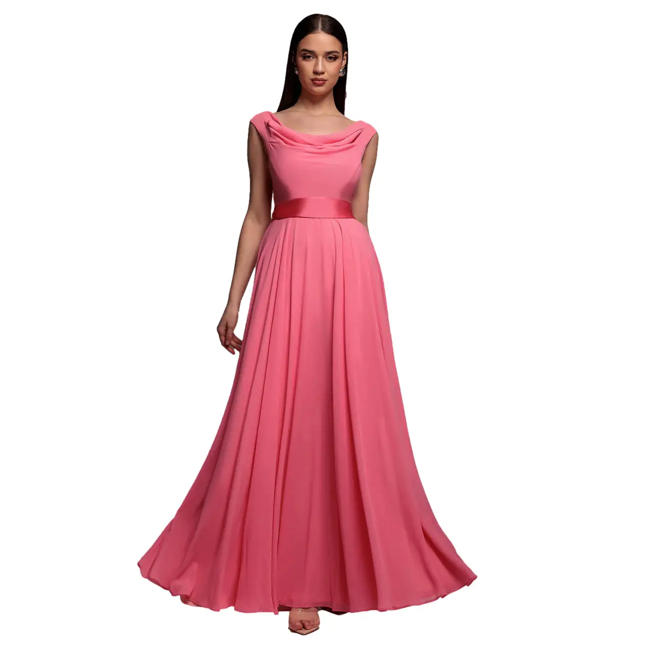 Zijdeachtige jurk met bénitierkraag dames Goddiva