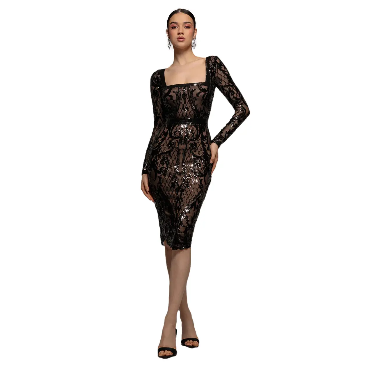 Glitterende lange jurk met hoge kraag dames Goddiva