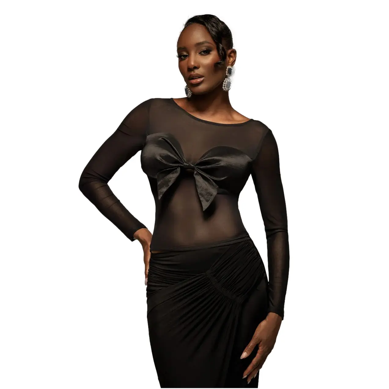 Vrouwelijke strapless jurk met volant en strik Goddiva Contrast Organza