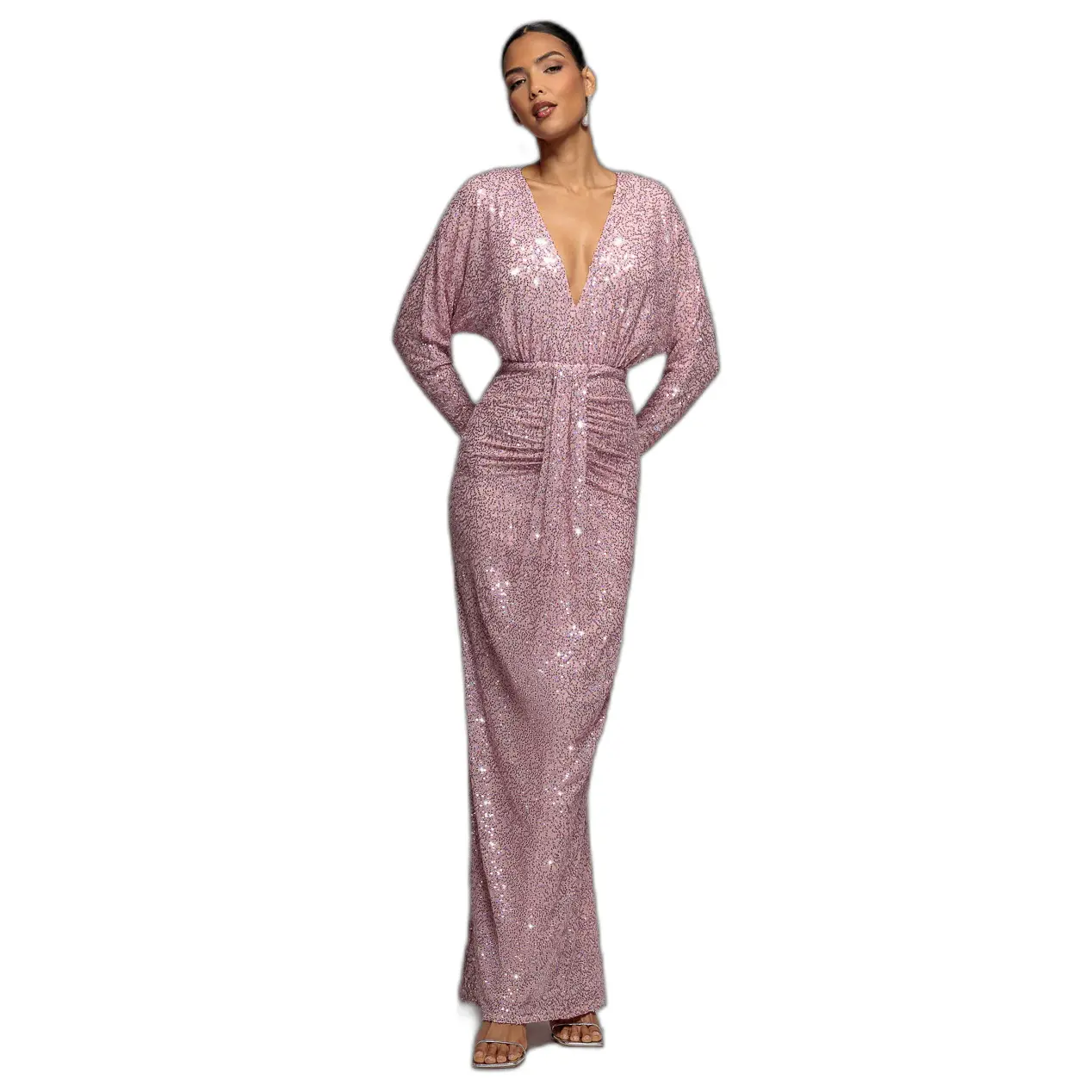 V-hals Paillettenjurk dames Goddiva Maxi
