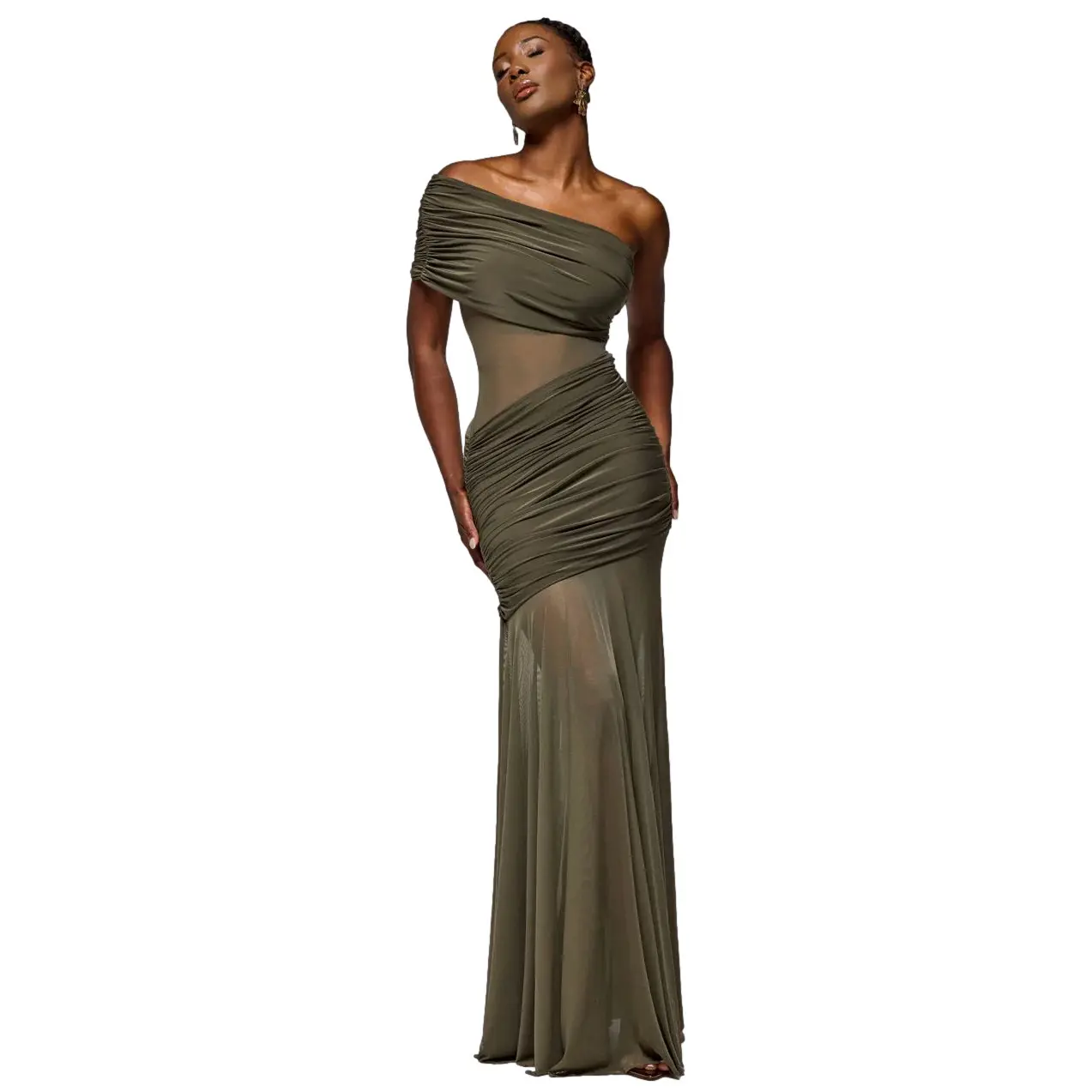 Eén-schouder lange jurk dames Goddiva