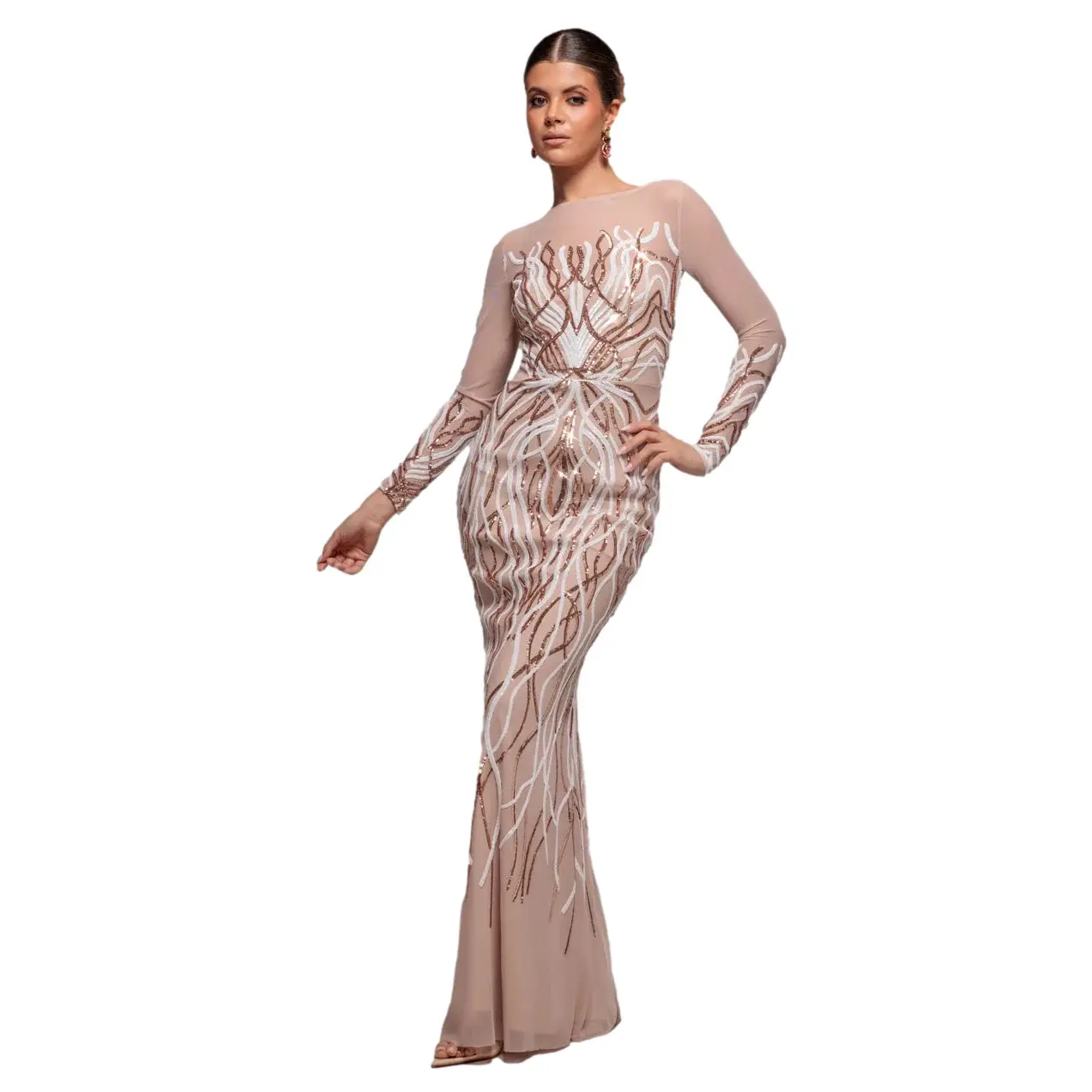 Vrouw lange mouwen jurk met pailletten vlam Goddiva Maxi