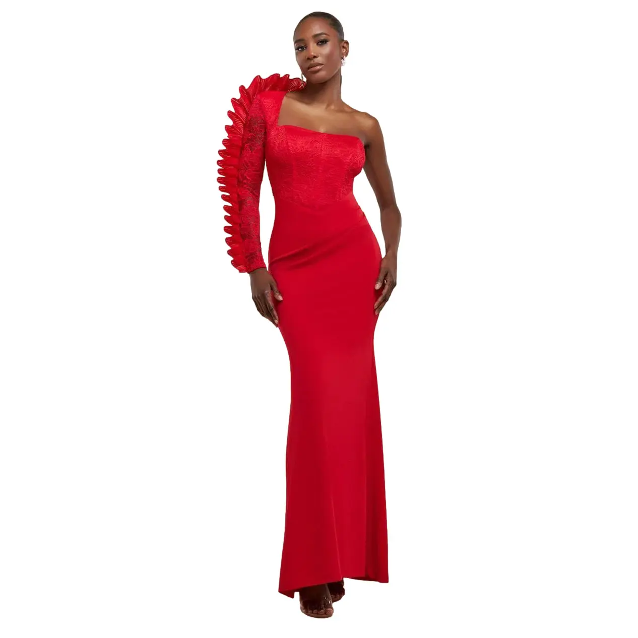 Vrouwelijke Asymmetrische Maxidress met Plissé Goddiva