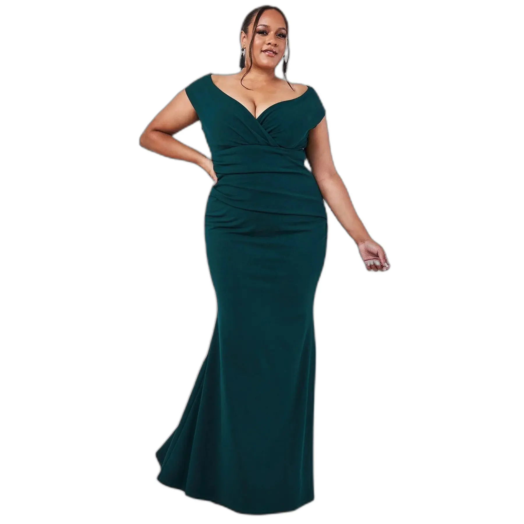 Maxi Plissé Asymmetrische Aansluitende Bardot Schouderjurk voor Vrouwen Goddiva