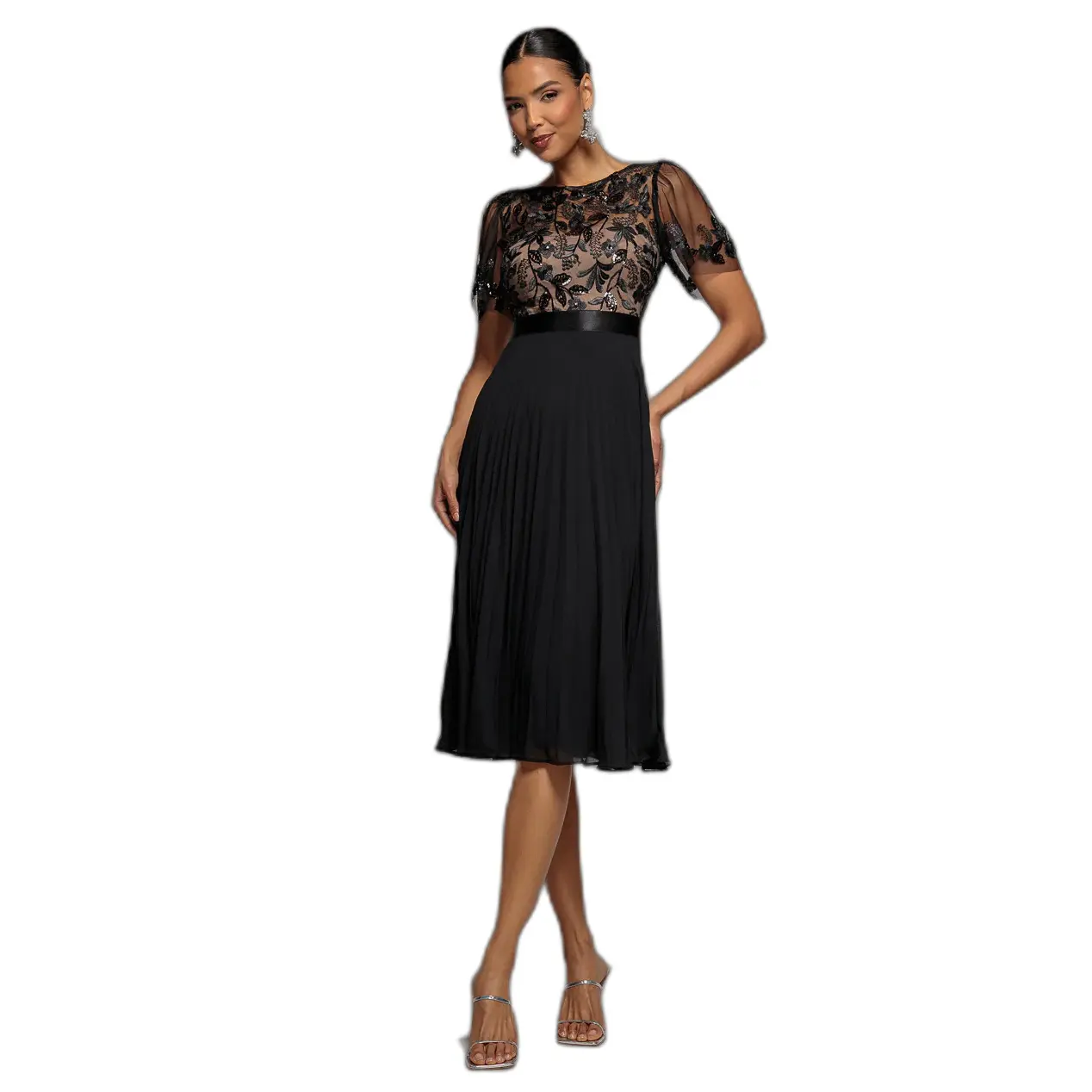 Geplooide midi jurk in geborduurd chiffon dames Goddiva