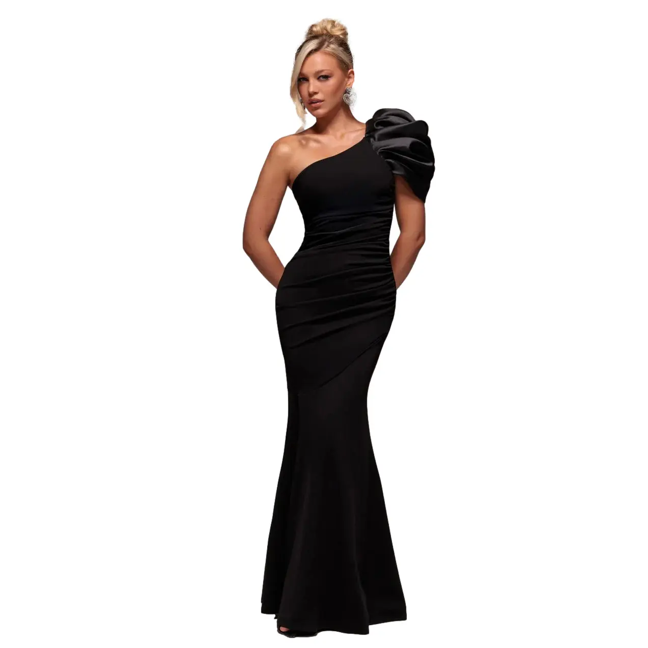 Asymmetrische Lange Strakke Satijnen Jurk Dames Goddiva