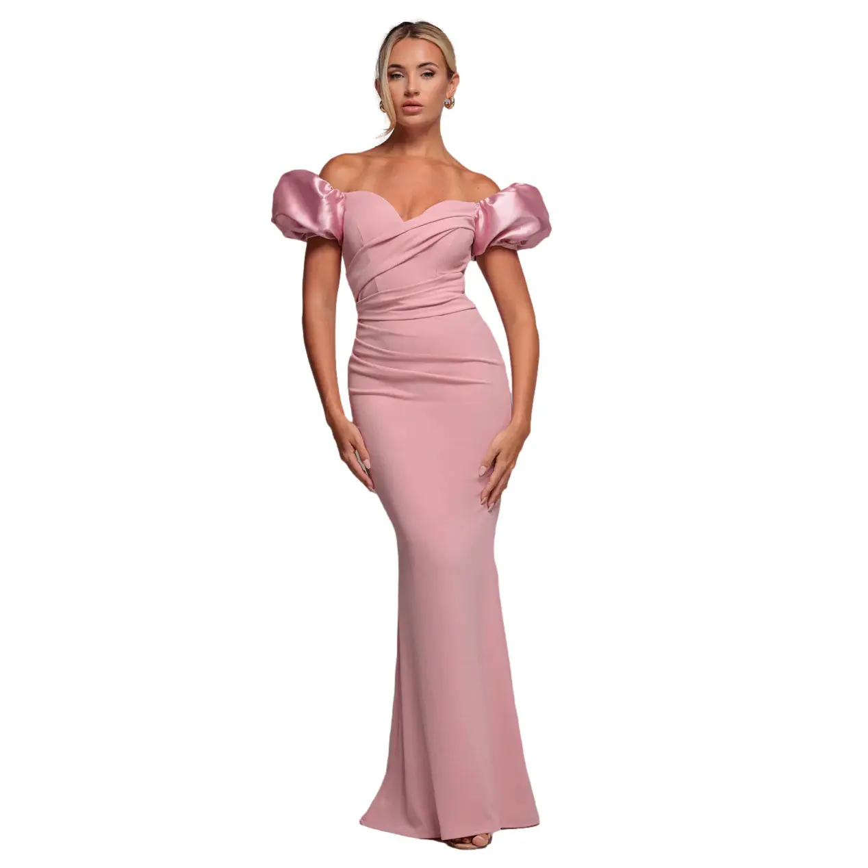 Lang jurk van scuba met pofmouwen in satijn dames Goddiva