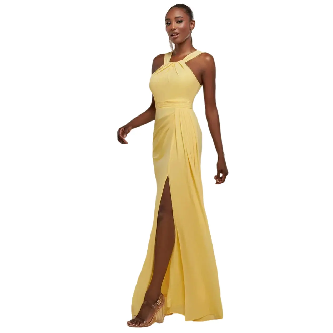 Dunne jurk met open rug en beeninsnijding dames Goddiva Maxi