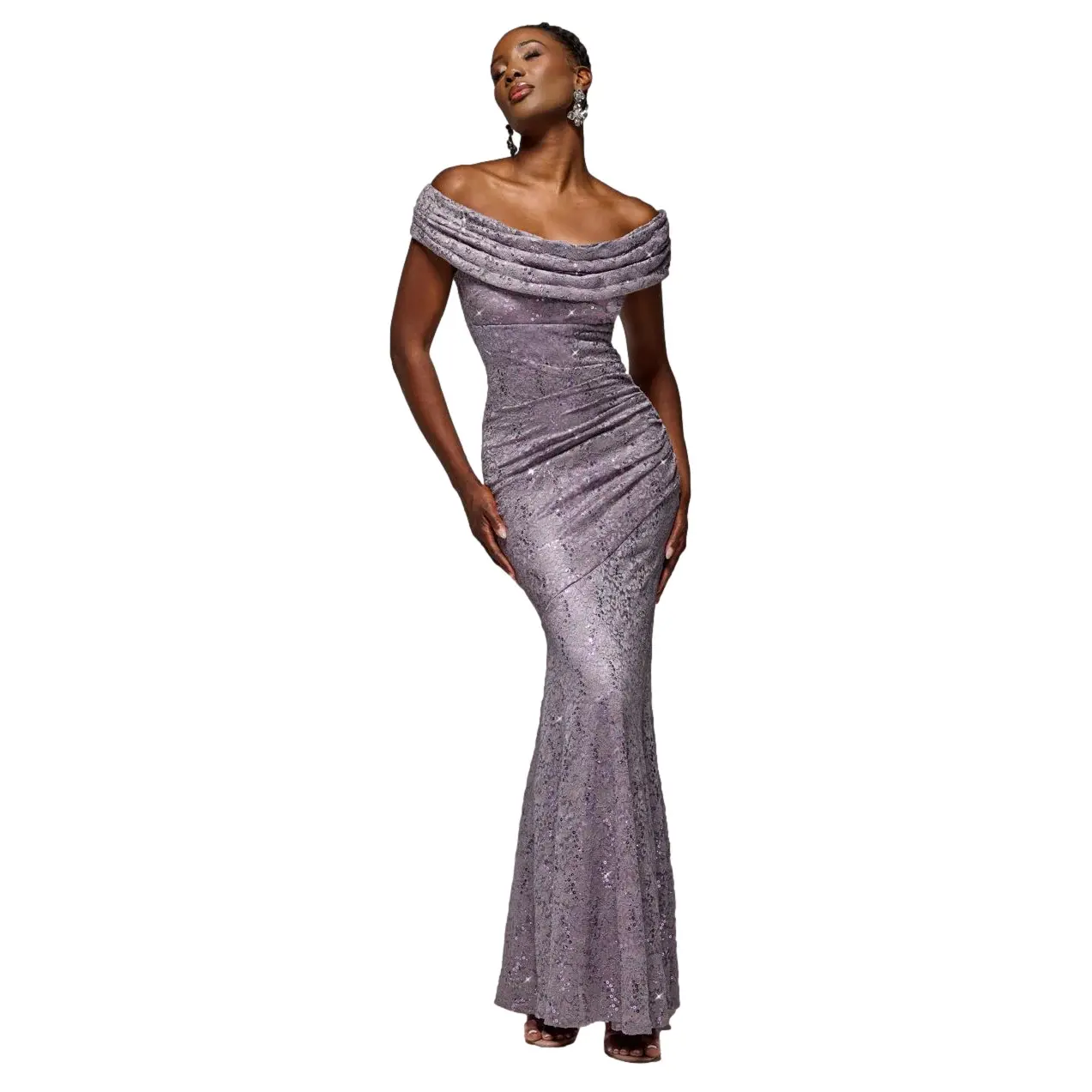 Damesjurk Goddiva Bardot Sequin & Lace High