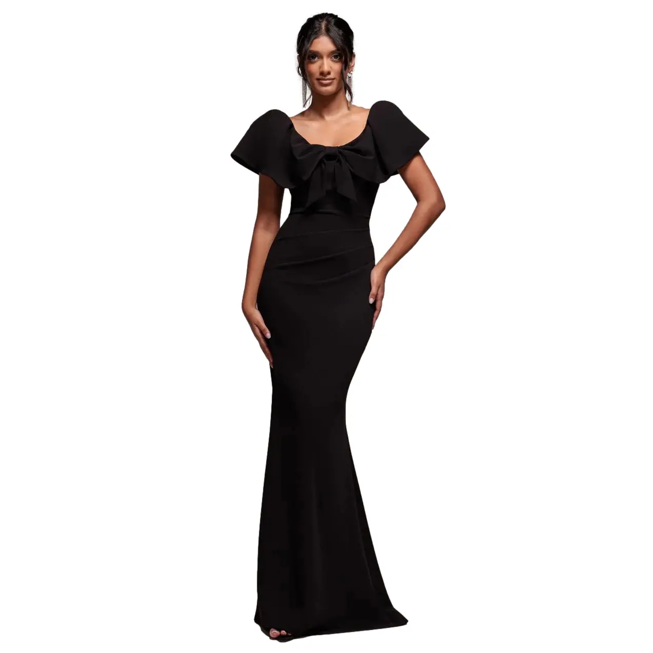 Vrouwelijke Off-Shoulder Geplooide Jurk Goddiva Scuba