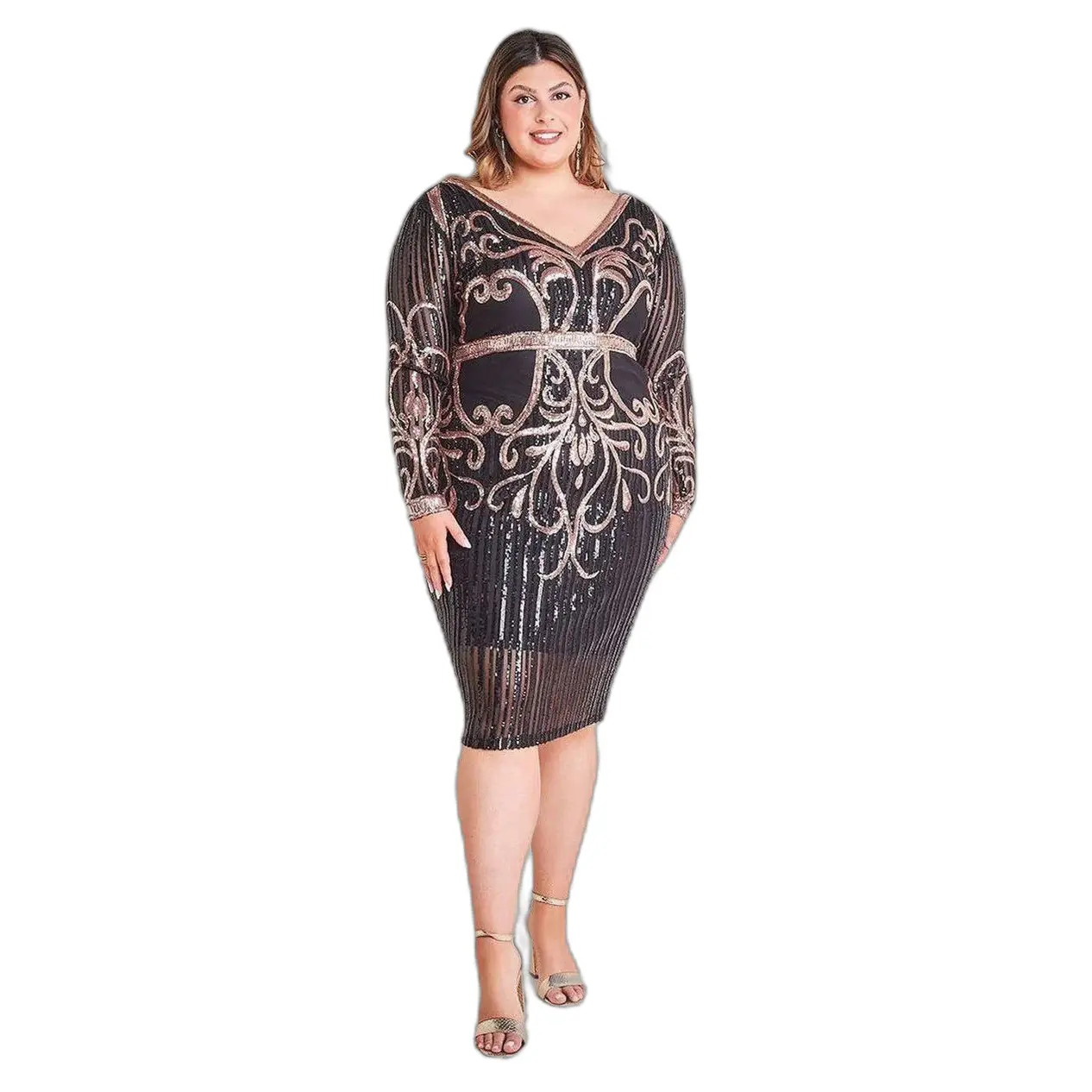 Damesjurk Goddiva Two Toned V Neck Sequin