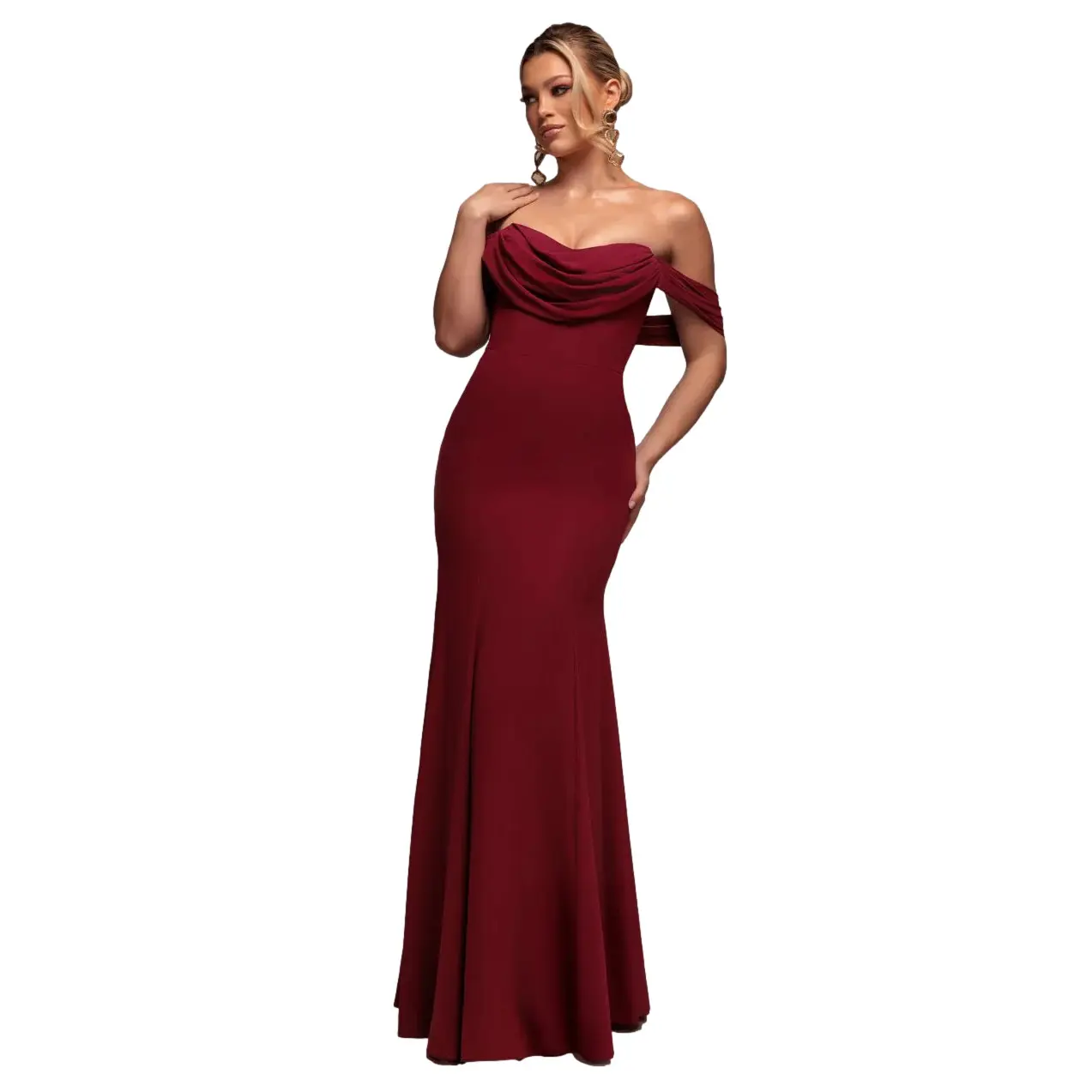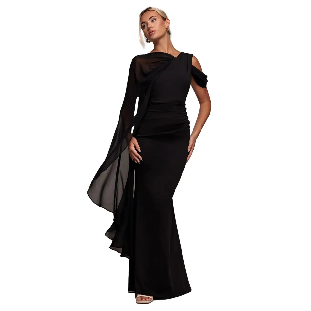 Lang Jurk Met Off-Shoulder En Draperende Mouwen Dames Goddiva