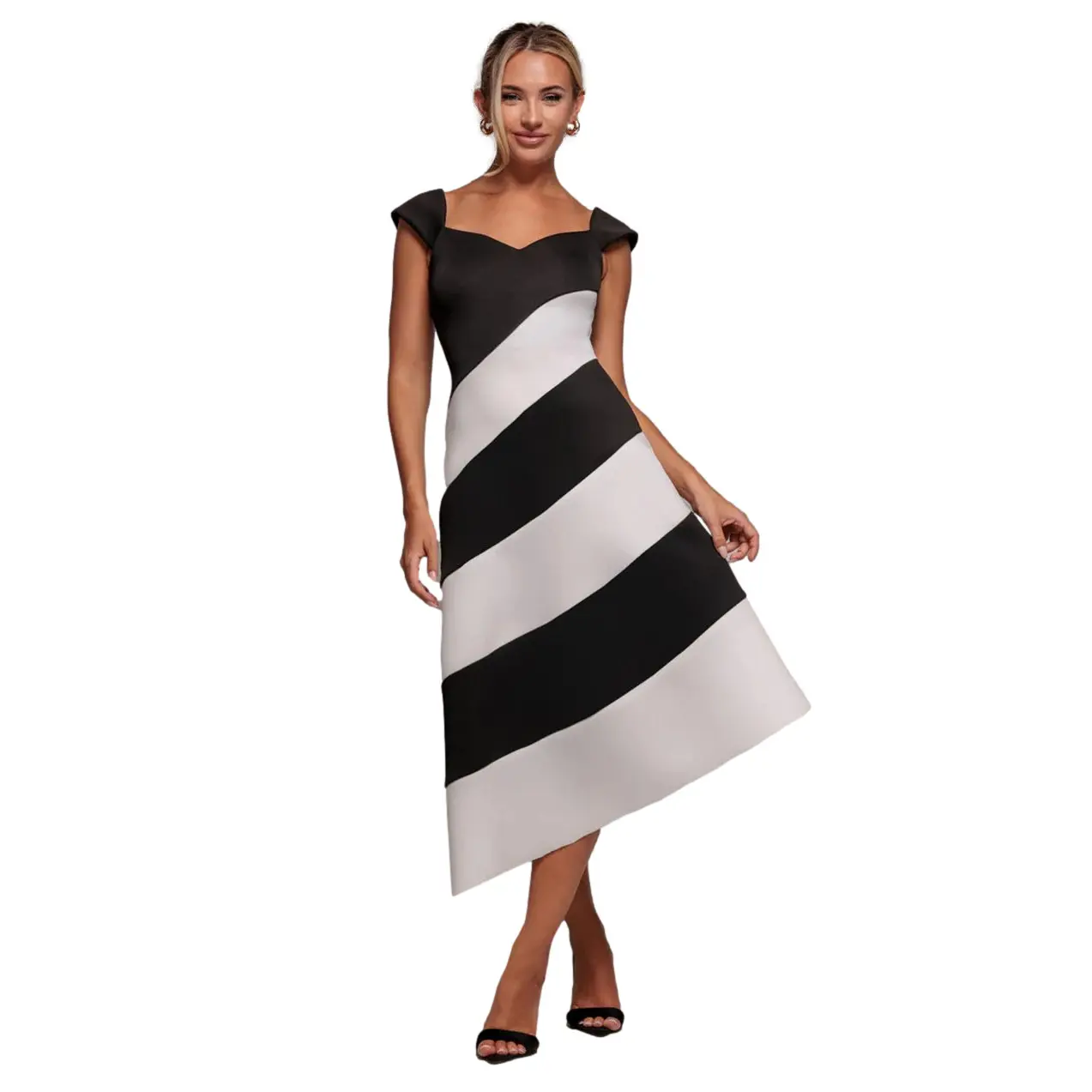 Asymmetrische jurk met contrasterende strepen vrouw Goddiva Midi