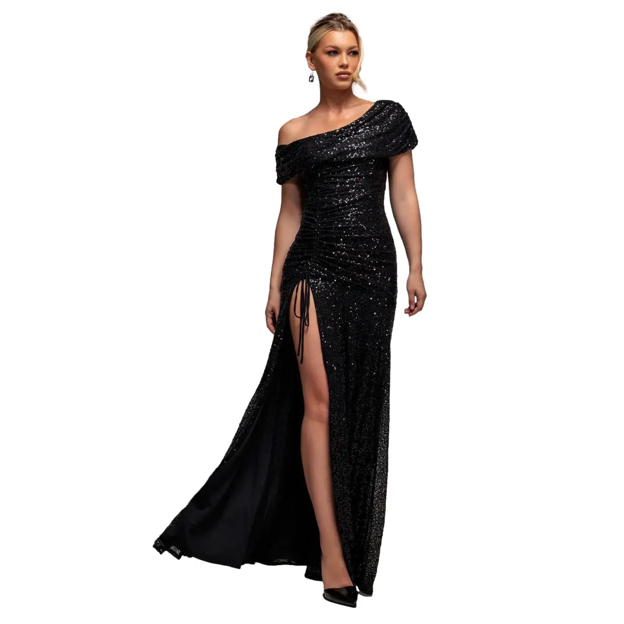 Asymmetrische Jurk met Pailletten en Satijn Dames Goddiva Midi