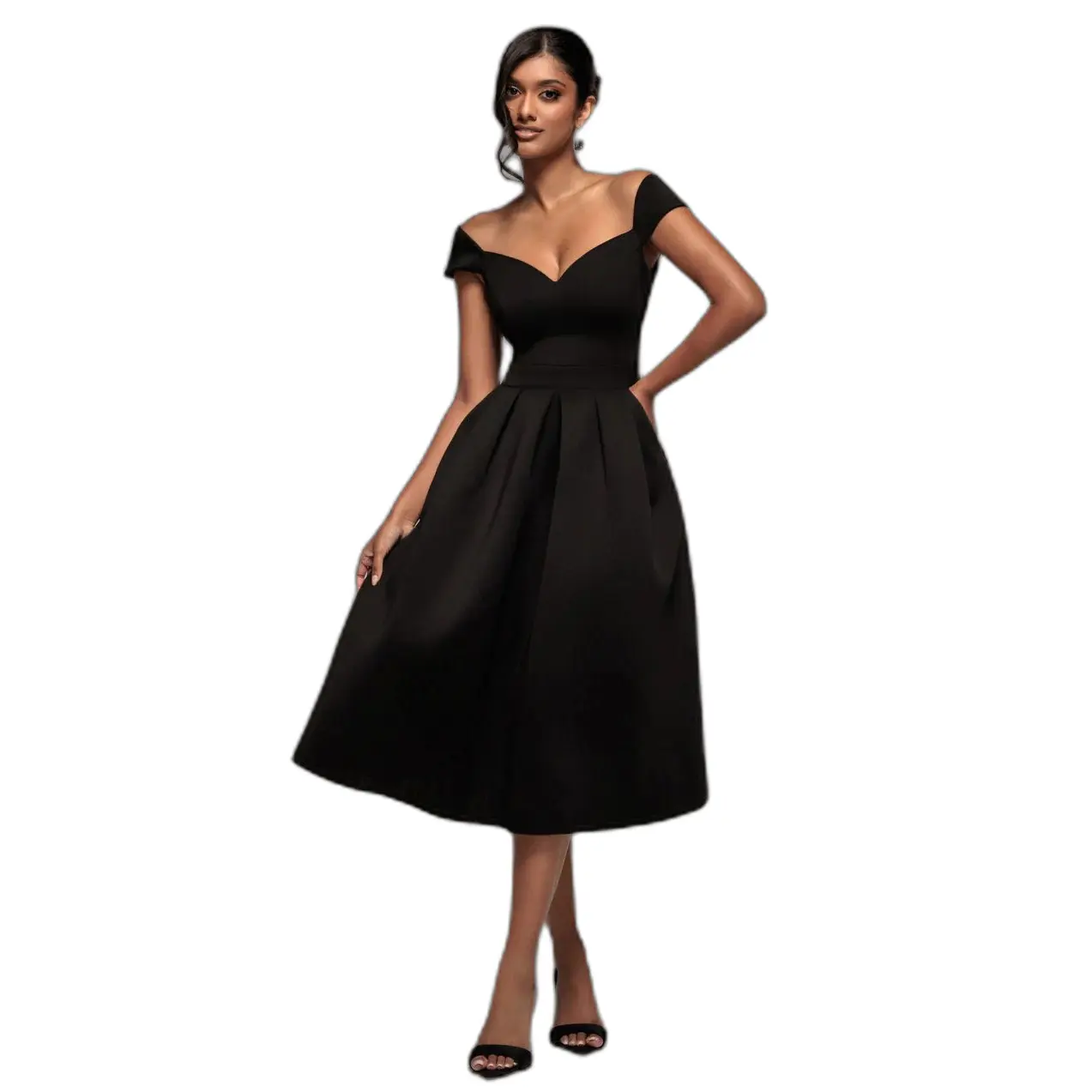 Plissé Scuba Bardot jurk voor dames Goddiva