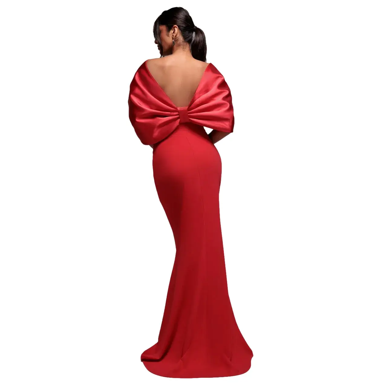 Lang slipjurk met blote schouders en strik op de rug vrouw Goddiva Scuba