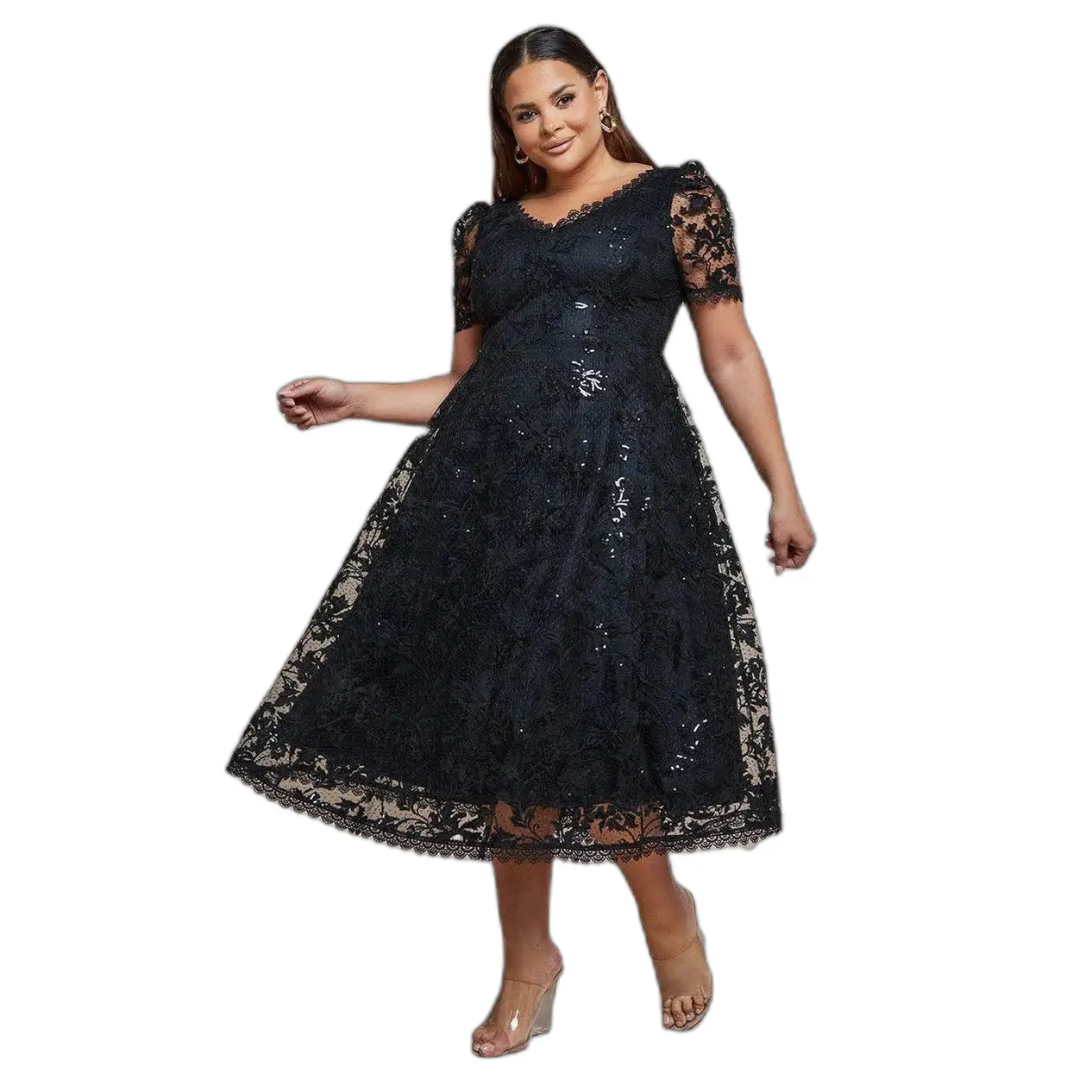 Damesjurk Goddiva Sequin Lace A-Line