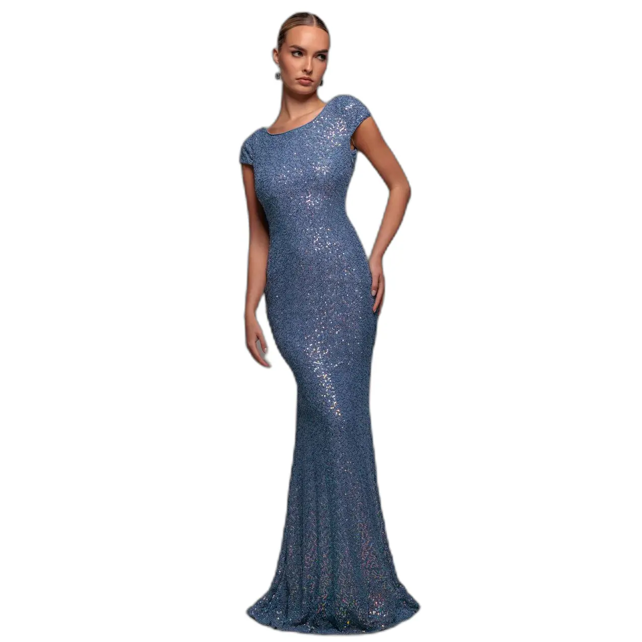 Vrouwelijke rugloze sequins jurk Goddiva Maxi