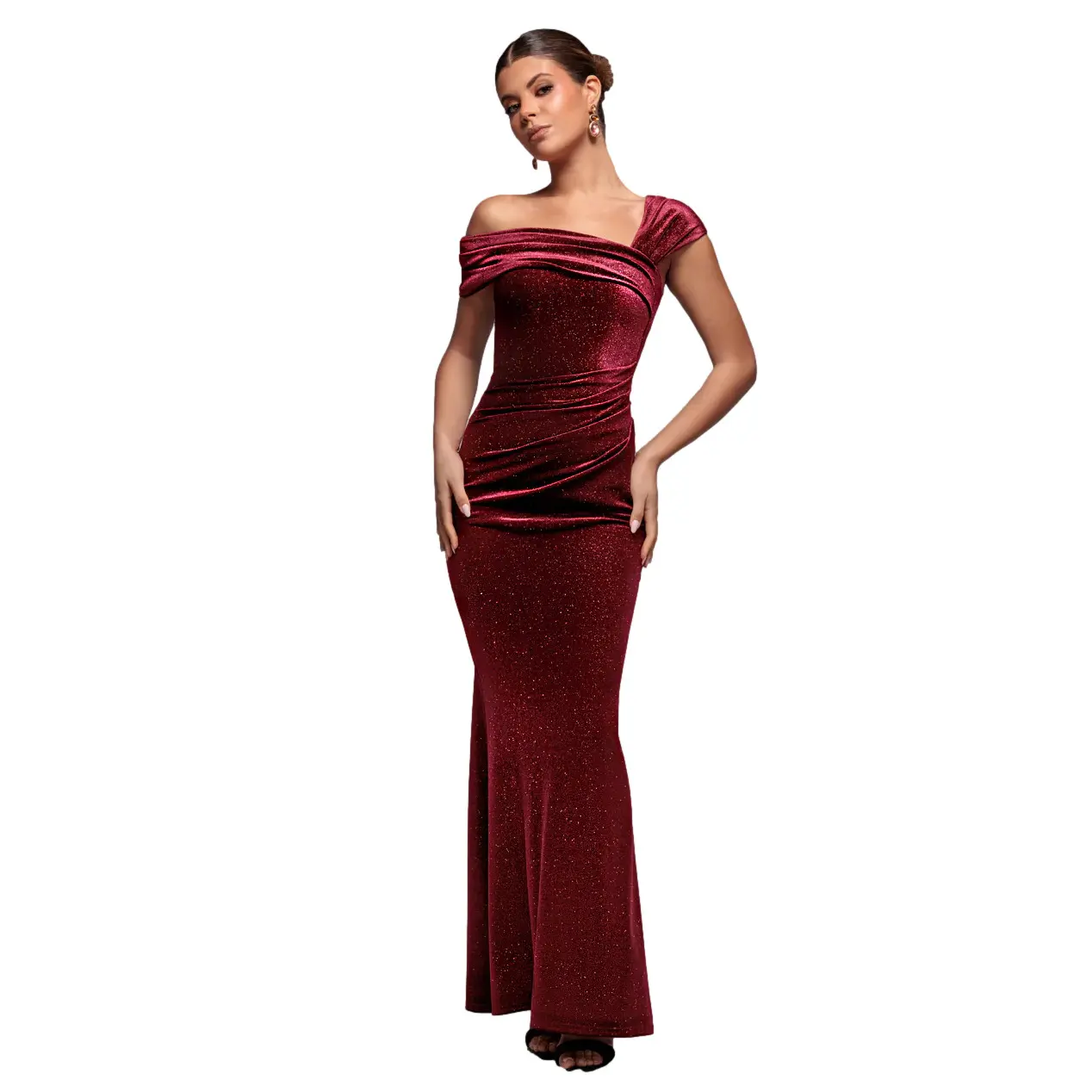 Glitterende Aansluitende Jurk met Vloeiende Corsage Dames Goddiva