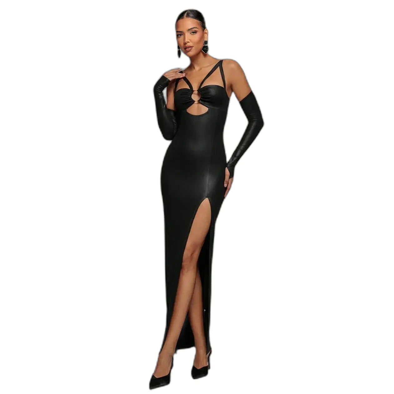 Vrouwelijke Kunstlederen Bodycon Jurk met Uitsnijdingen Goddiva