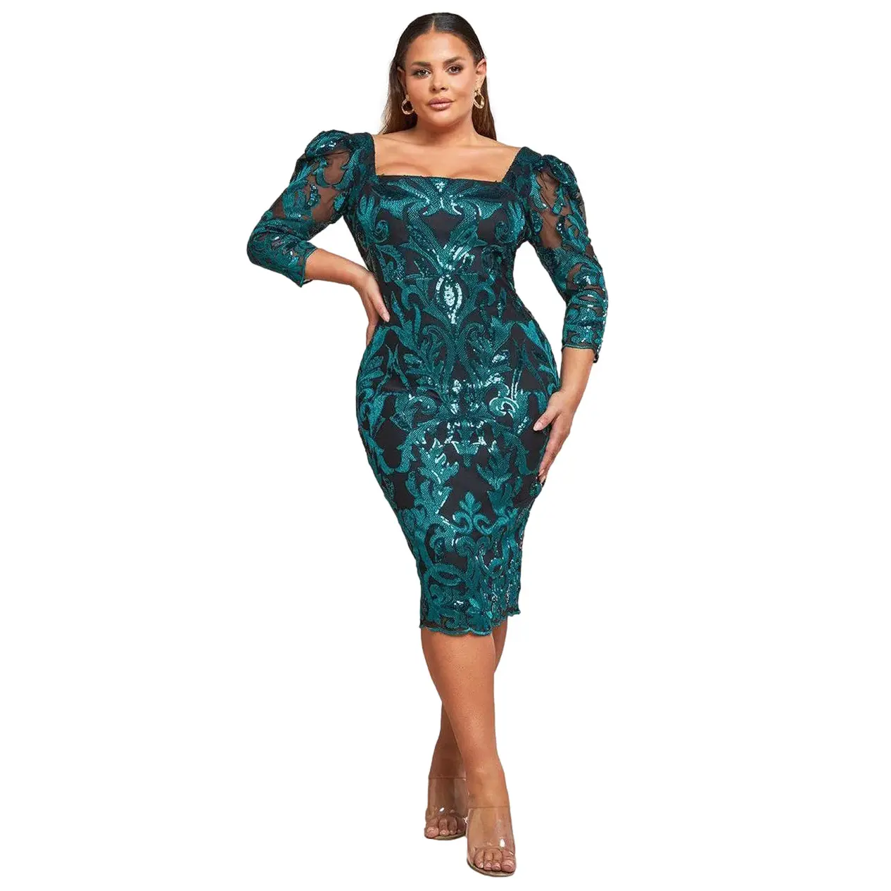 Lange damesjurk Goddiva Multi Sequin & Velvet Bardot