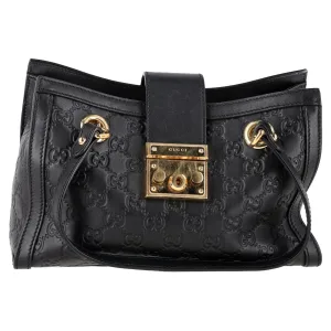 Kleine Gucci Guccissima handtas met hangslot in zwart leer