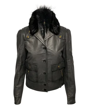 Gucci Jacket met Bontkraag Detail in Zwart Leer