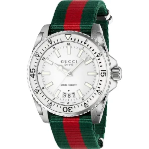 Gucci YA136207 Duik herenhorloge met witte wijzerplaat en textielen band