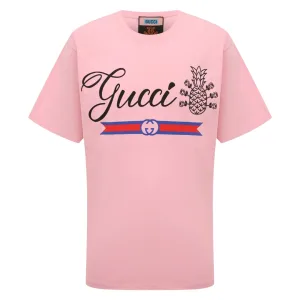 Oversized fit roze T-shirt met ananaslogo van Gucci