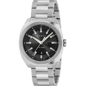 Gucci G-Timeless YA126402 Herenhorloge met zwarte wijzerplaat en zilveren armband