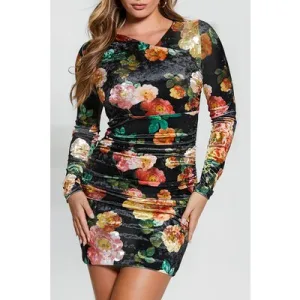 GUESS Eco Ls Tess Velvet Dress Peony Charm Print Bl