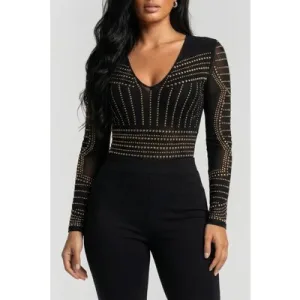 GUESS Marciano By Kristal Bodysuit Jet Black Multi
