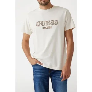 GUESS Eco Ss Cn Embro Te Vanilla Cream