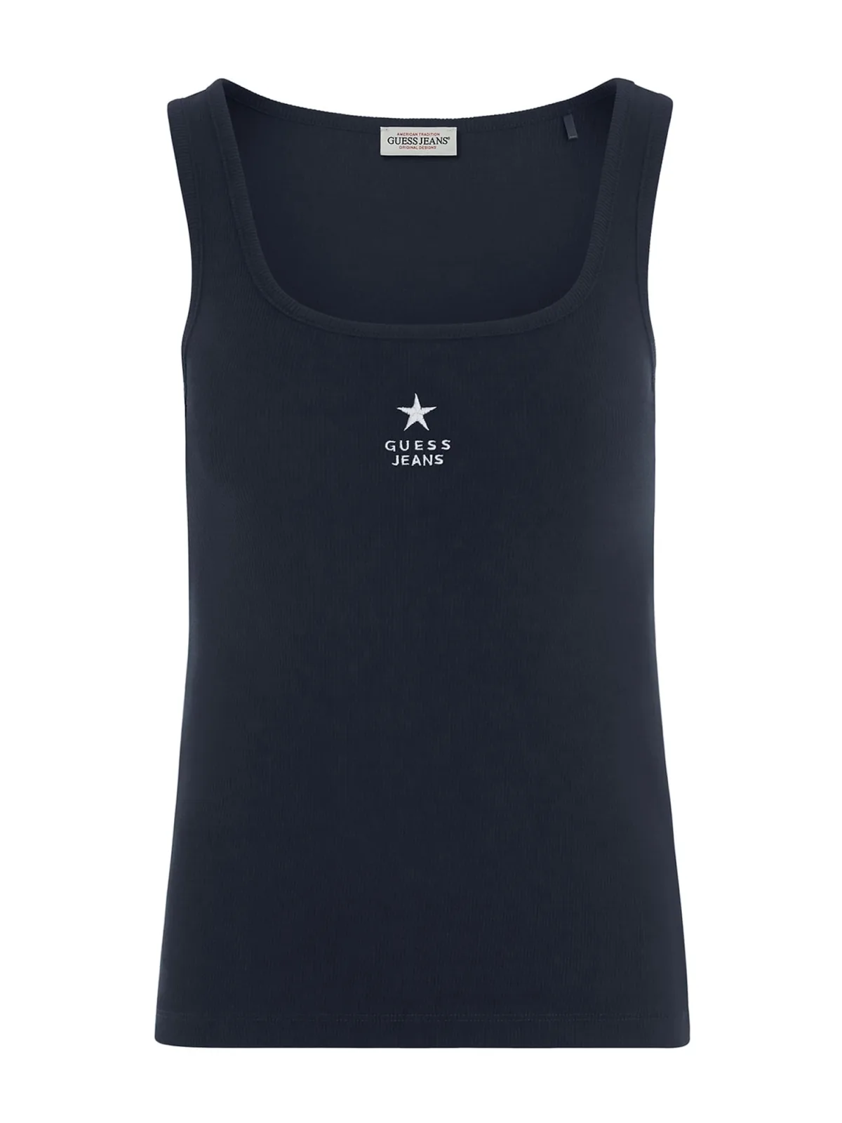 Guess Jeans Slim Rib Emb Mouwloos T-shirt Blauw L Vrouw