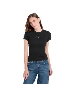 Guess Jeans Gj Sl Cn Embro Slim Rib T-shirt Met Korte Mouwen Zwart S Vrouw