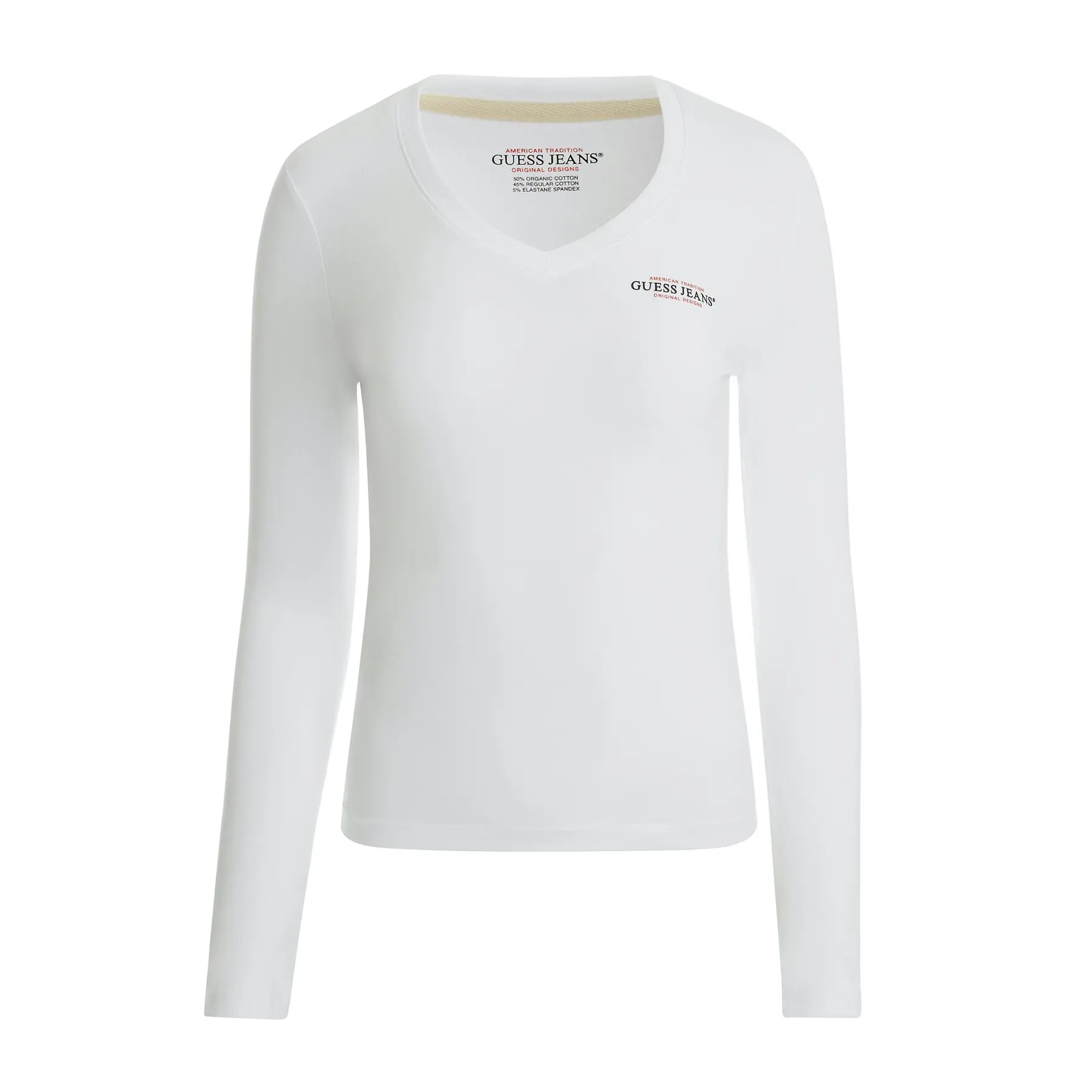 Slim fit lange mouwen T-shirt met V-hals mini Amerika dames Guess