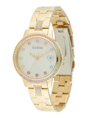 GUESS Analoog horloge ‘Three Of Hearts’ lichtblauw / goud / rosa / wit
