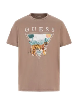 GUESS Shirt ‘TIGER SPIRIT’ beige / brokaat / smaragd / oranje