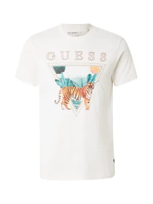 GUESS Shirt ‘TIGER SPIRIT’ donkerbeige / cyaan blauw / oranje / wit