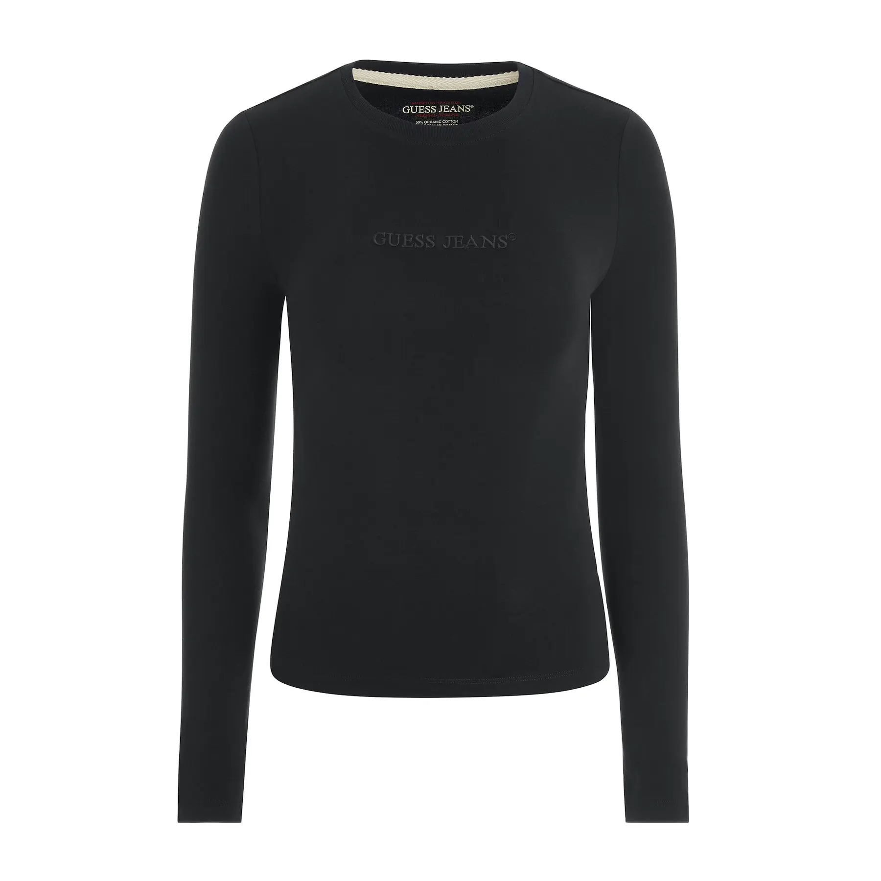 Slim fit lange mouw T-shirt met geborduurd logo voor dames Guess