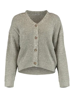 Hailys Gebreid vest ‘Pipa’ kaki / wit