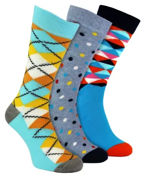 3-Pack Unisex Funky Design Cadeausokken Set – Marineblauw
