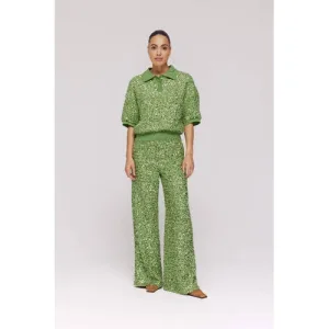 HARPER & YVE Wide leg regular waist casual broek groen met pailletten