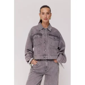 HARPER & YVE denim spijkerjas grey denim met franjes