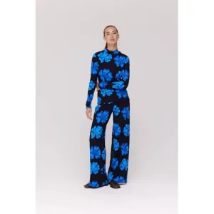 HARPER & YVE wide leg regular waist gebloemde casual broek blauw