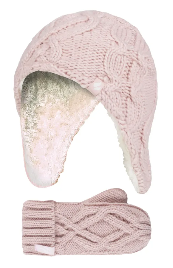 Heat Holders Meisjes Majestueuze Trapper Hat Mitts Set – Schemerig Roze