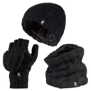 Heat Holders dameshoed, nekwarmer handschoenen set – Zwart